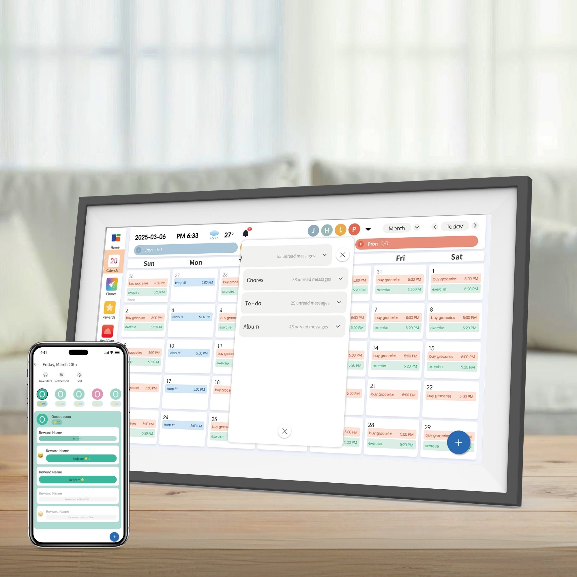 Digital Calendar display for photos, calendar, news, weather and so much more that makes it easy to get organized all your family's schedules, lists and information, shared responsibility for everyone in your home.