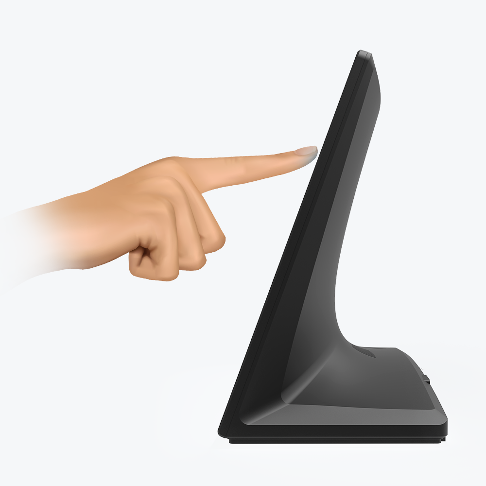 The L-shaped design makes it easy to place on a desktop without requiring external bracket and provides users a comfortable angle for use.