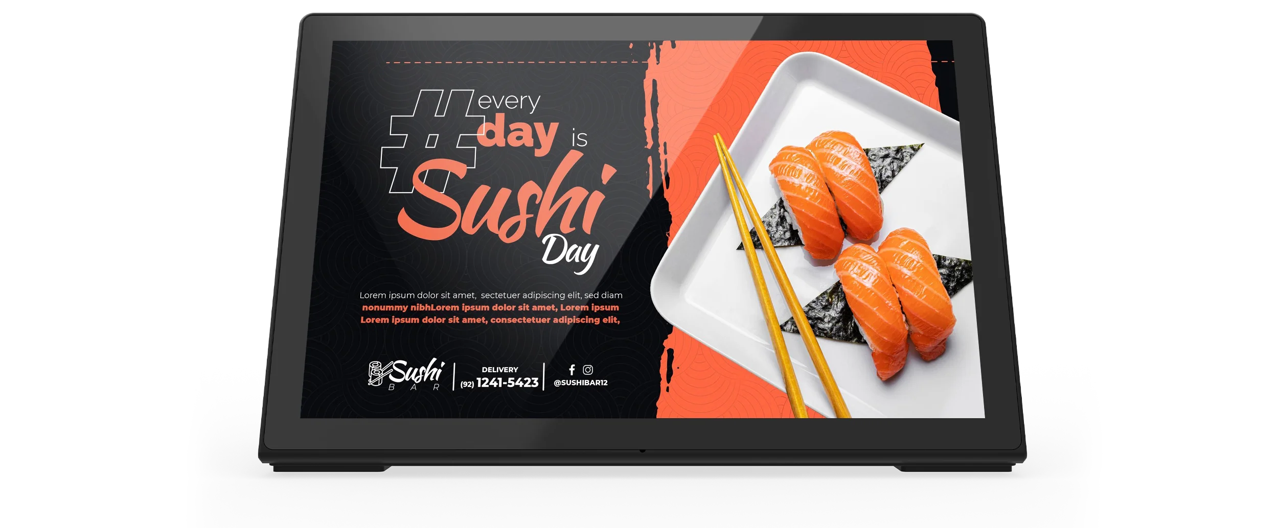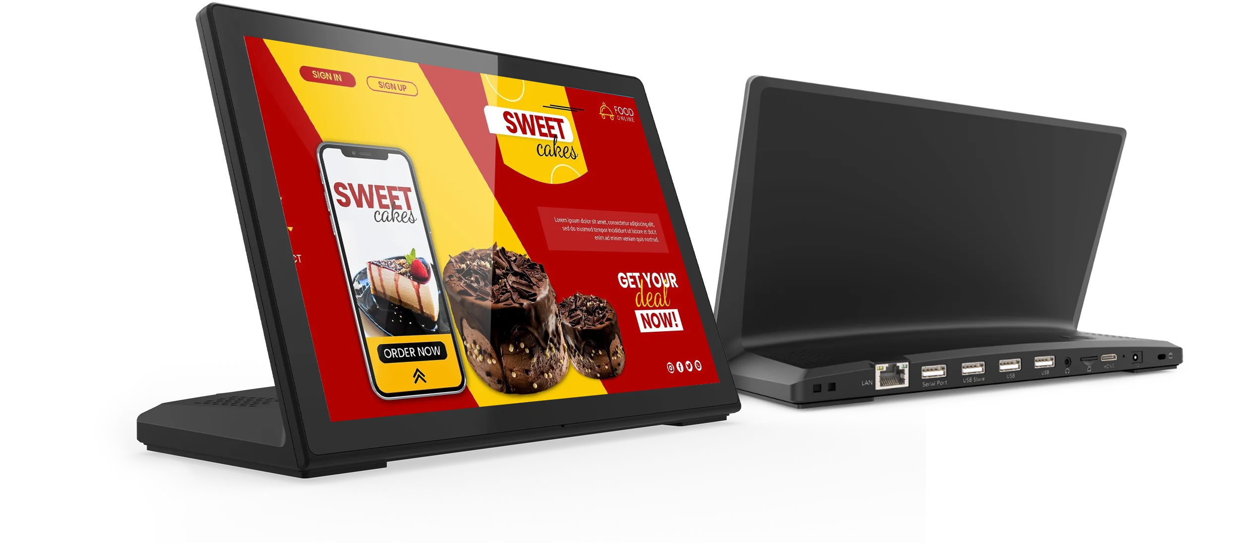 From retail and entertainment to corporate offices and signage, the 10.1-inch desktop signage is an excellent choice to meet the demands of continuous public use. Easy to integrate and suitable for intensive use.