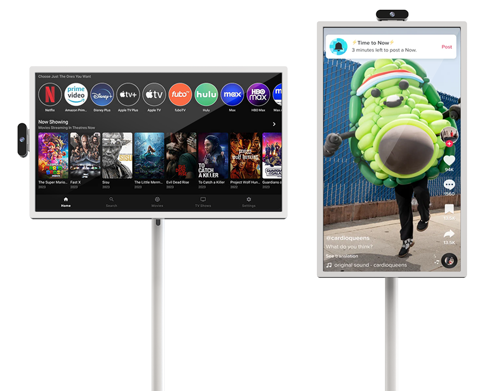 The 24-inch in cell touch screen features a 1920x1080 pixel resolution for an high-definition visual experience. An optional external 8MP camera (vertical top mount only) and a remote control (Bluetooth voice version) are provided for each portable tv, allowing you to easily use and control the device.