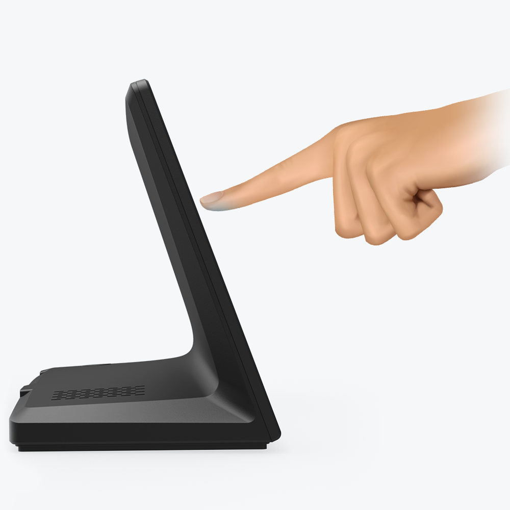 The L-shaped design makes it easy to place on a desktop without requiring external bracket and provides users a comfortable angle for use.